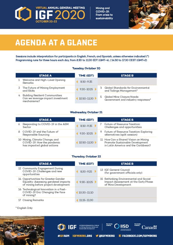 Registration is now open for the Intergovernmental Forum on Mining, Minerals, Metals and Sustainable Development’s (IGF) 16th Annual General Meeting (AGM) on October 20–22, 2020. The AGM is the leading international forum on mining policy and sustainable development.