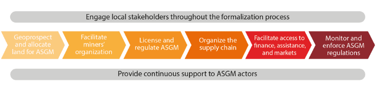 Clearly, formalization is a multidimensional process, containing many components, ranging from allocating land and facilitating miners’ organizations, to providing access to finance and enforcing regulations.
