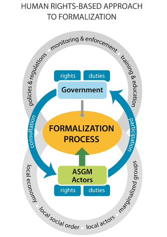 In short, formalization of the ASM sector is not easy. It is an ongoing, long-term process that may take decades to accomplish in difficult environments, and in many countries there will likely always be some informal ASM miners and traders. However, by designing a comprehensive and pragmatic approach that is informed by the local realities of the sector and addresses the interests of the various stakeholders, substantial progress can be made in selected areas. Moreover, it is also the formalization process itself—which is fundamentally a process of development, and can contribute to state building—that matters. Taking a human rights-based approach to formalization, which focuses on the rights and duties of both mining actors and the government in a bottom-up, participatory process, can help to address the root causes of the sector’s informal nature and its related deficiencies.